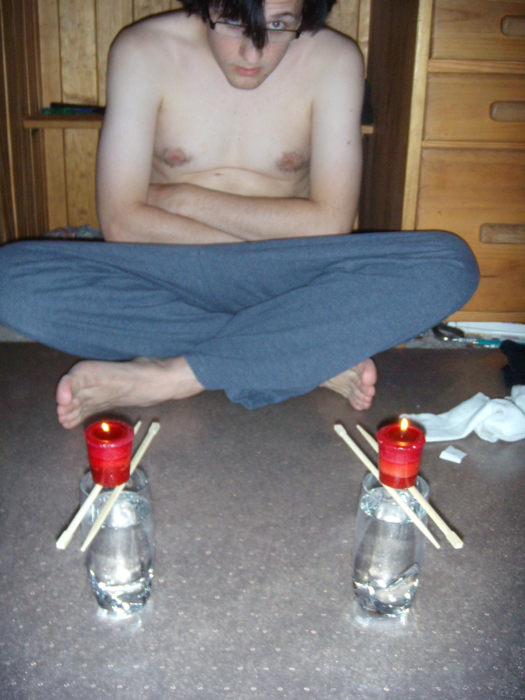 This is me, depriving myself of sleep by playing with little plastic pyramids.