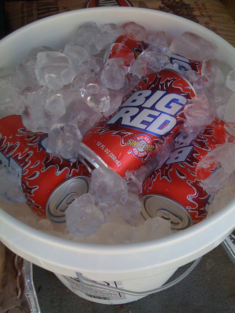 Lacking Cheerwine, a NC barbecue essential, Burn Unit tracked down some Big Red, which is a frankly-bizarre cream soda from Texas that goes GREAT with barbecue. Though it tastes like it, wikipedia will tell you it's NOT actually bubblegum. Also, I'm particularly fond of this picture, as a kind of meditation on the essential nature of summer.