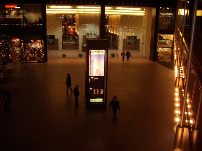 So I took a walk one evening on Nicollet Mall in Minneapolis. For those that wonder about such things, I went north the entire length of the mall, taking pictures of anything visually striking along the way. I included a photo of every northbound bus shelter for the entire length of the mall. I permitted myself to go in directions other than due north, but I never went south or otherwise backtracked. Part of the time I was outside; part of the time I was inside the skyway system.