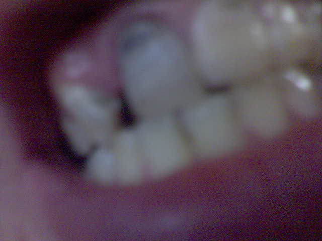 well when i was in the 8th grade i was hit in the mouth by a baseball and had to get surgery on my mouth. and now years later one of my big tooths is rotting/decaying. if u look close at the pic. u can see the black of the tooth at the top of the tooth. at the moment it hasnt reall worsened but in tim e it will get worse. so yeah i will update later