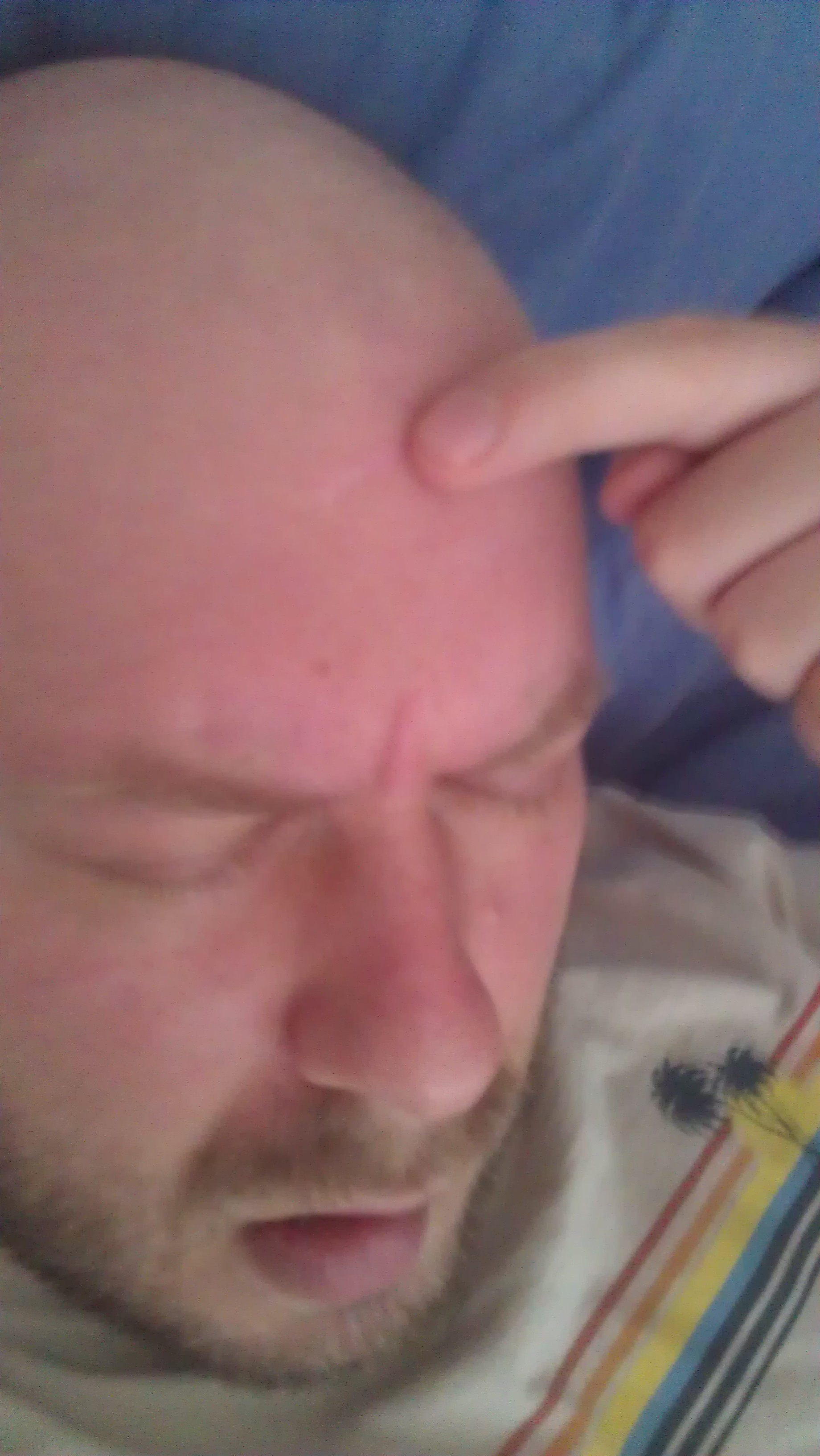 I got the scar on my forehead when I was in 5th grade. I was playing football with some older kids (8th, 9th graders) and one of them pushed me into an old chain link fence. I didn't feel anything but when I turned around my friends were horrified. The fence ripped my forehead open. I went to a walk-in and when the doctor suggested I get stitches, I was adamantly against it... 20 years later, I regret not getting stitches very much as I've had a scar in the middle of my forehead for most of my life...