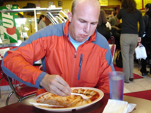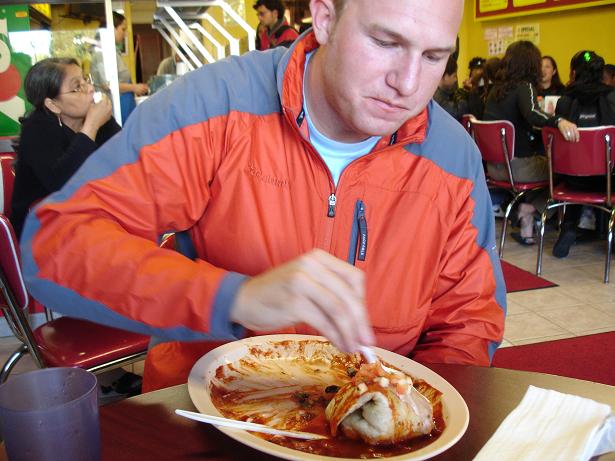 I was lucky enough to also be able to document the demise of this burrito. The catalyst? A large, hungry white man. I don't think he even stopped to take a breath. It was about the size of his head, too. I was amazed.