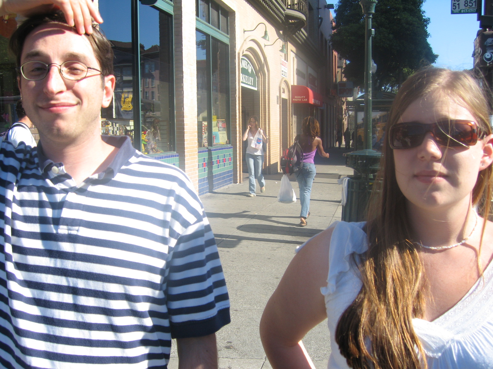 So we run around downtown berkeley for a while, looking for open, cheap take-out eateries that would have disposable utensils. We find a few...