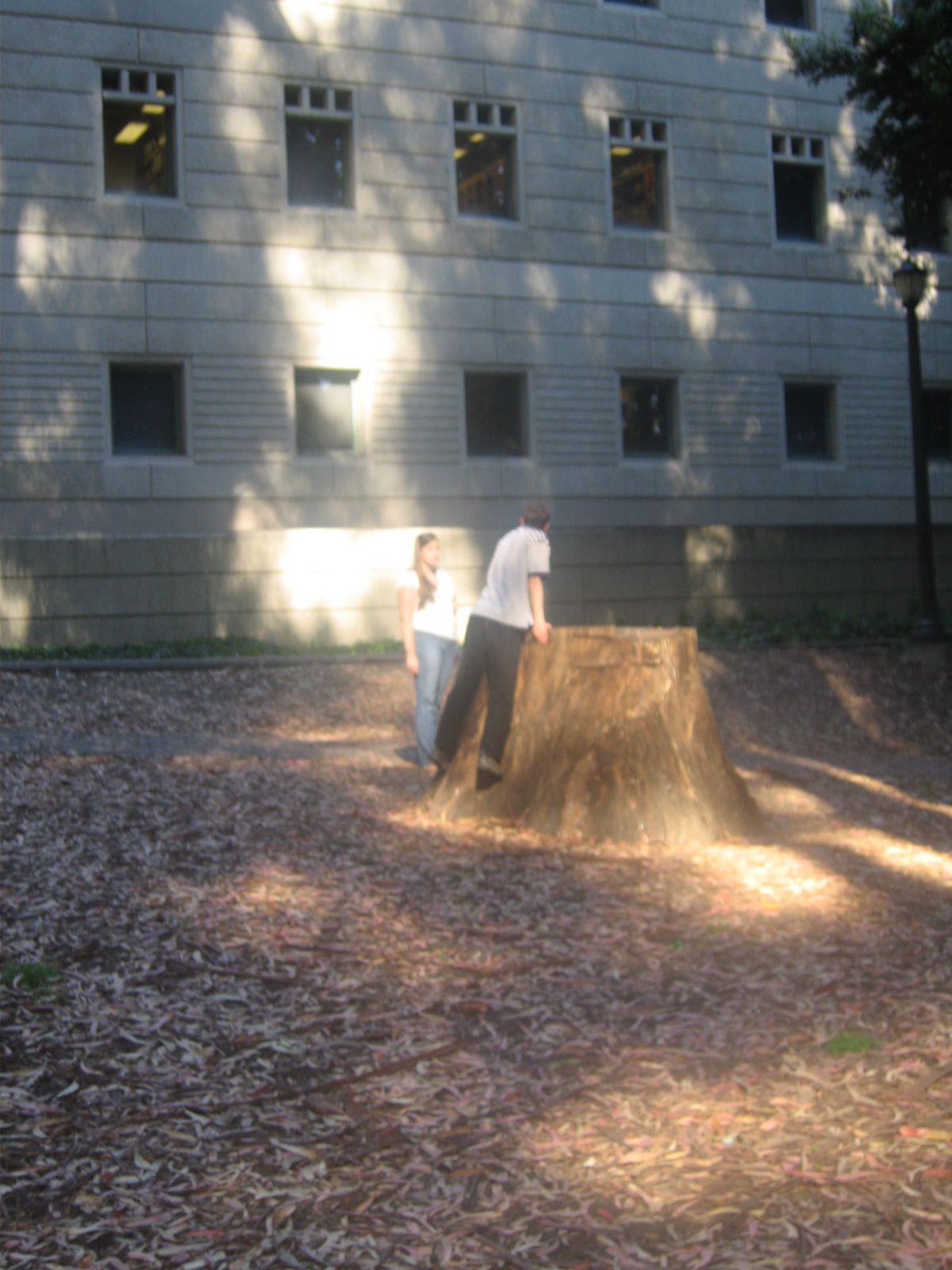 We decide that the end point is going to be across the street from the tuning fork (the Entrance to the Downtown Berkeley BART station), and what's going to make us take seperate paths is the fact that we must all return with a fork of our own.