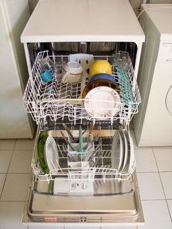 1915 - The dishwasher automatically washes, rinses and dries what I had just recently dirtied.