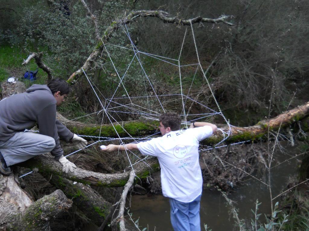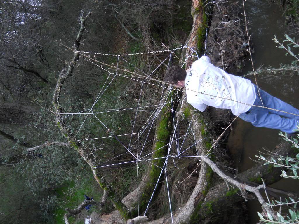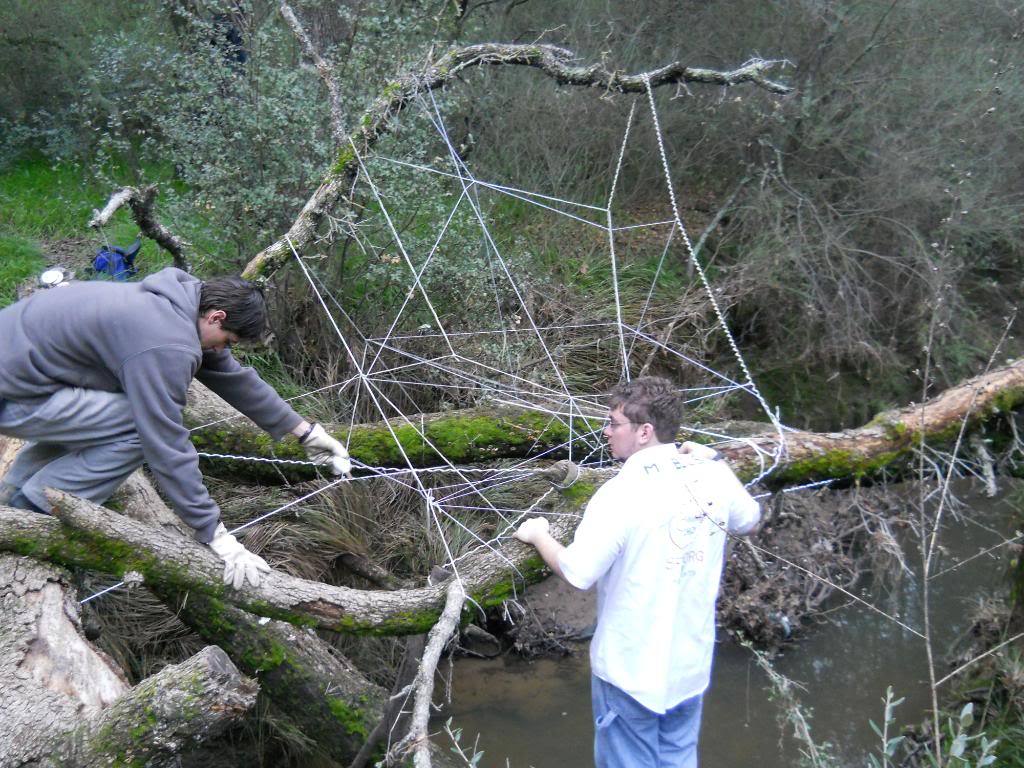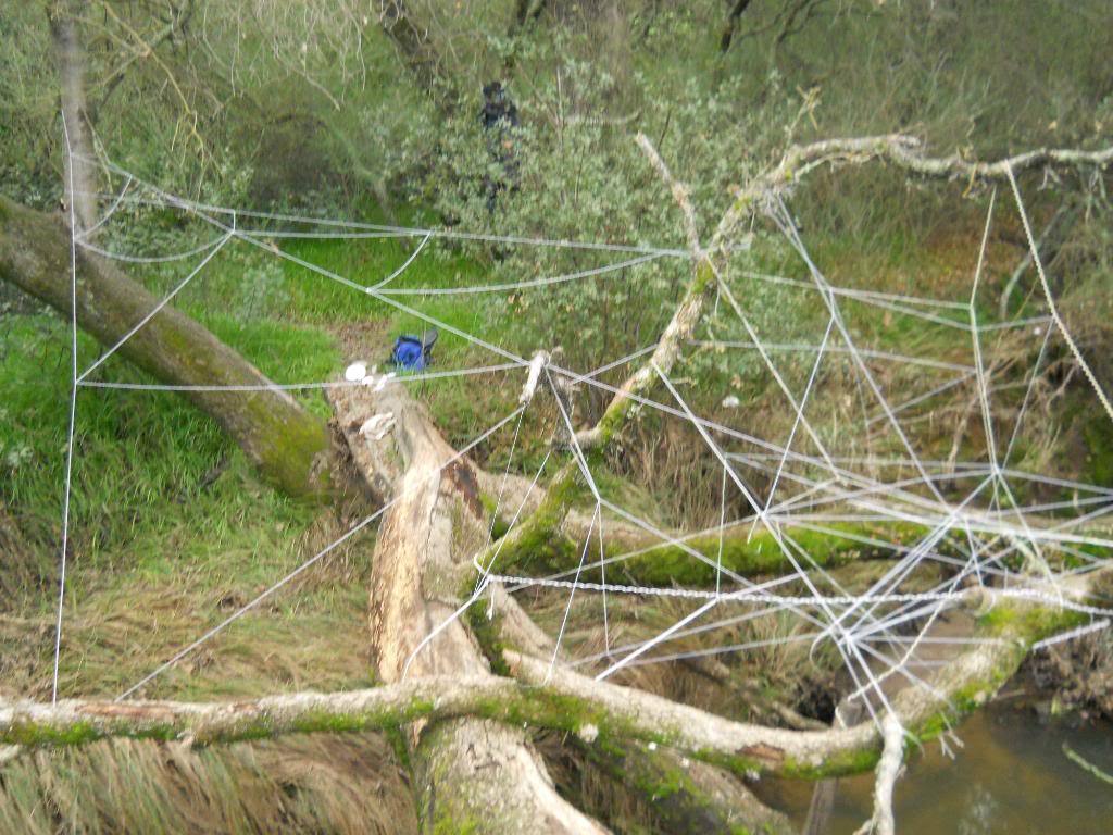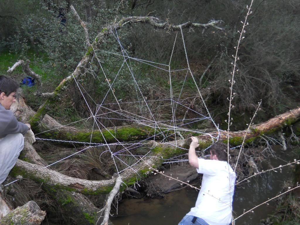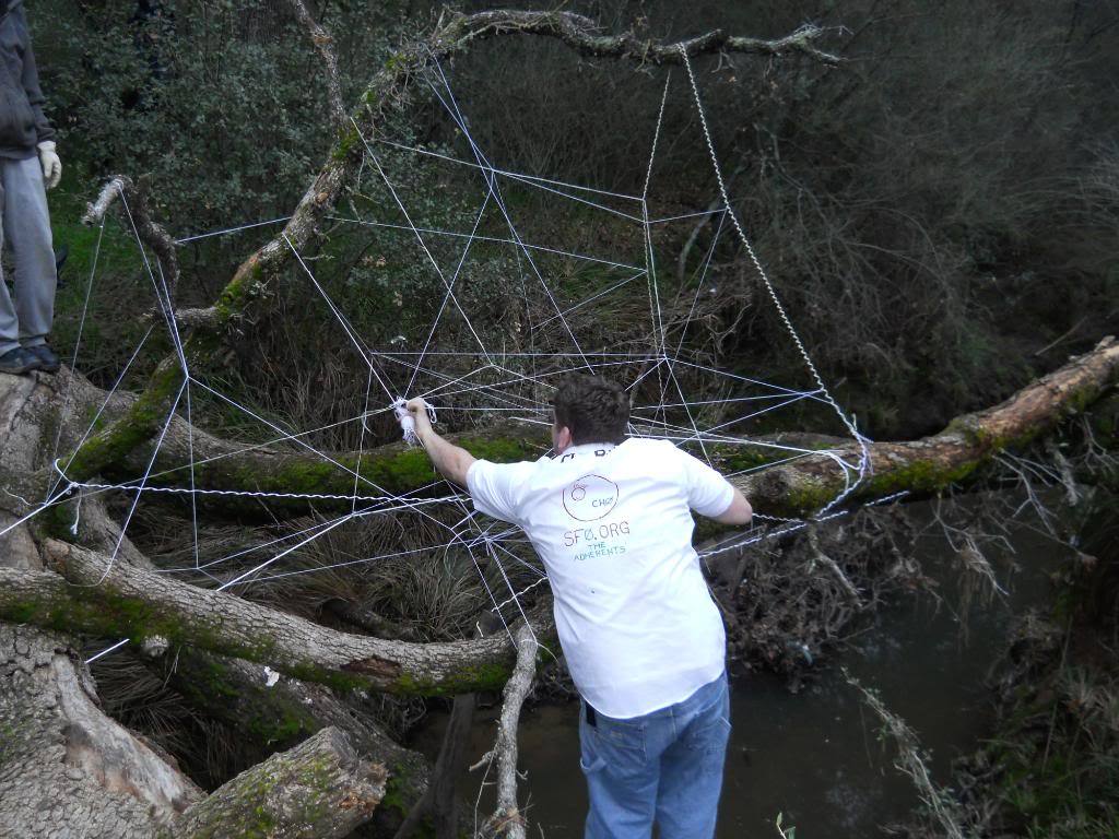 INSTRUCTIONS: I seldom find in my adventures that a rope has been positioned in a way which fascinates me without being helpful, such as perhaps turning a piece of public art and a tree into the supports for a giant spiderweb.