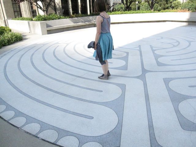 While thinking about how best to "play" in a labyrinth, we walked our way to the center, calmly and meditatively following the path before us until following the twists and turns of the labyrinth became automatic and subconscious. Then, in the middle with no ideas, we walked back out in the same fashion.