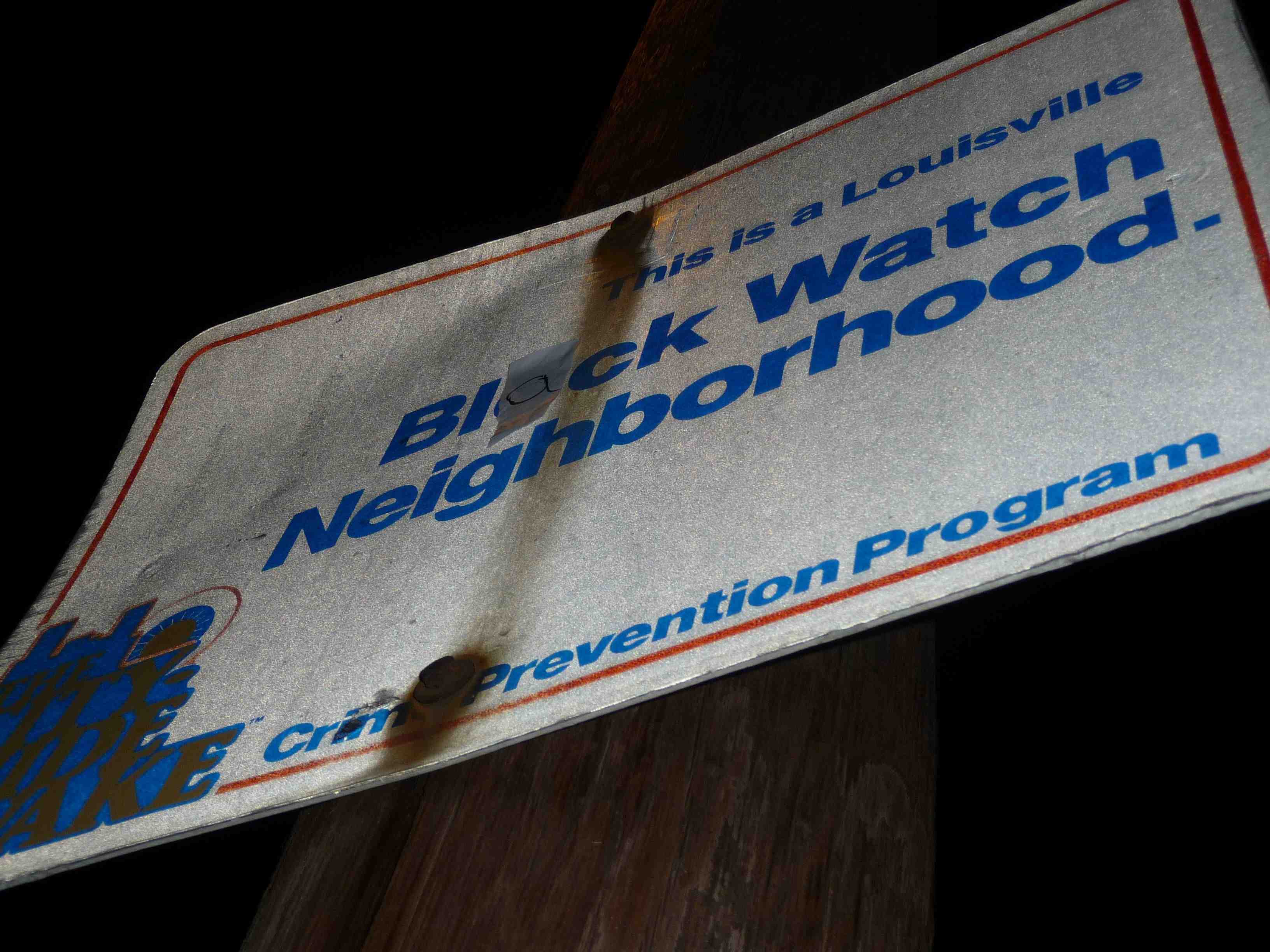 Ascending the rickety ladder of OSHA failures, I realized this may not end well. Specifically, with me falling on the hood of some car. I pressed on though, and plastered the crude "A" in the middle of the sign. After I climbed down to get the shot, I noticed that physics was not my friend this night.