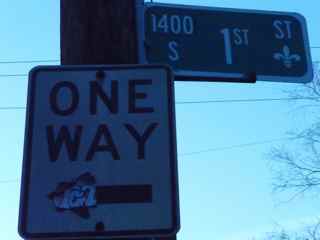 There were obstacles in my way, though. Namely, this sign was a good 20 feet off the ground, and I hadn't had my Jamba Juice with a flight boost that day. Off to the local coffee shop to find answers.