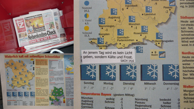 "In that day there will be no light; the luminaries will dwindle." - Zechariah 14,6. Of course we put it back in the newspaper box.