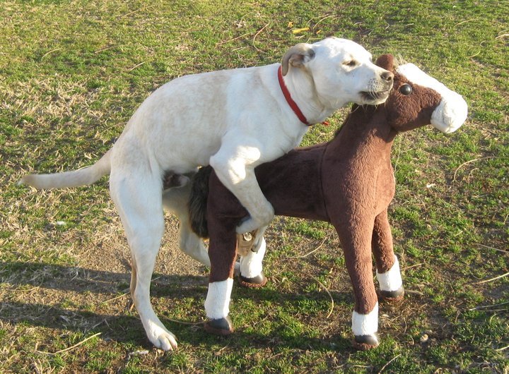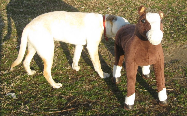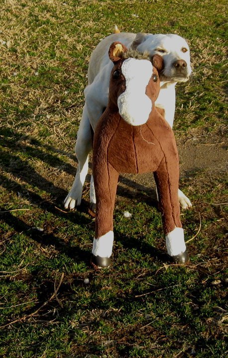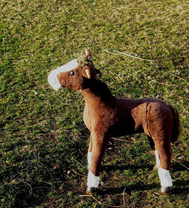 So anyway almost everyday for a couple of weeks, I come home (from work - there you go) and this stuffed ride on horse is in the driveway or laying in the yard.