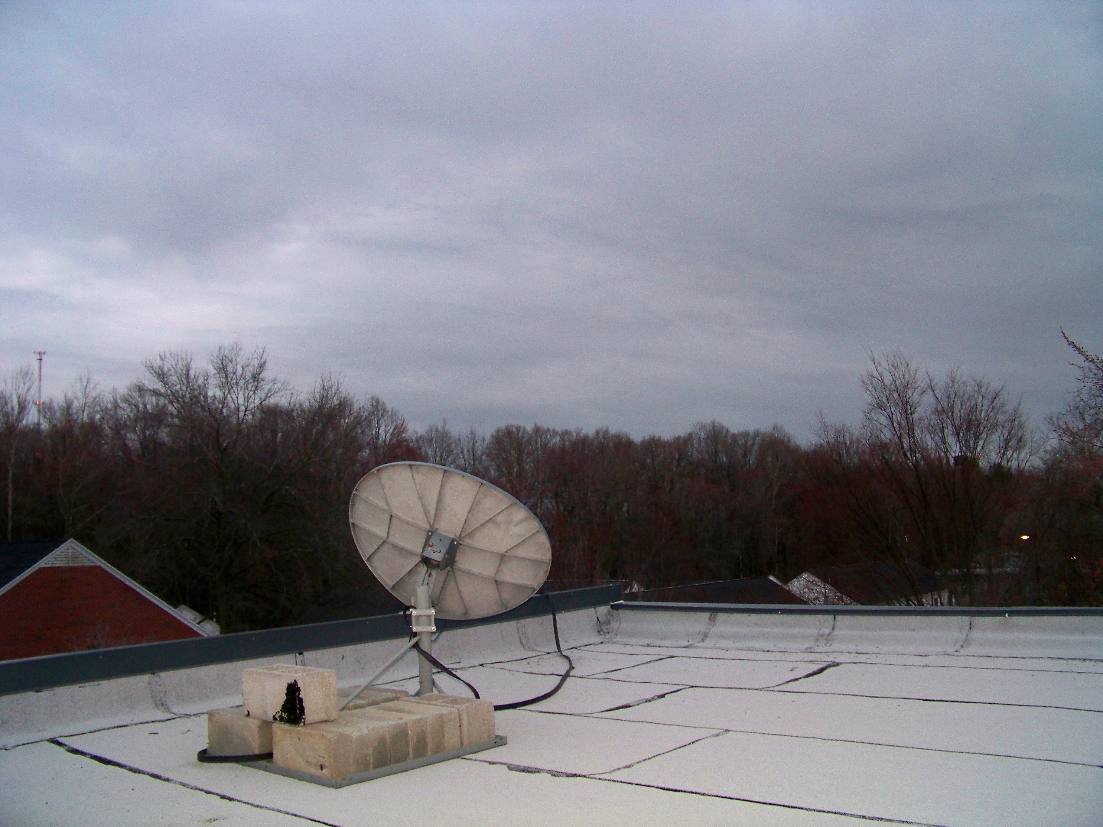 A 1.2 GHZ Yagi-Uda with folded dipole driven element coupled through a frequency translator to to a vertically polarized 45 degree phased array. Obviously a link in the alien cloaking network.
