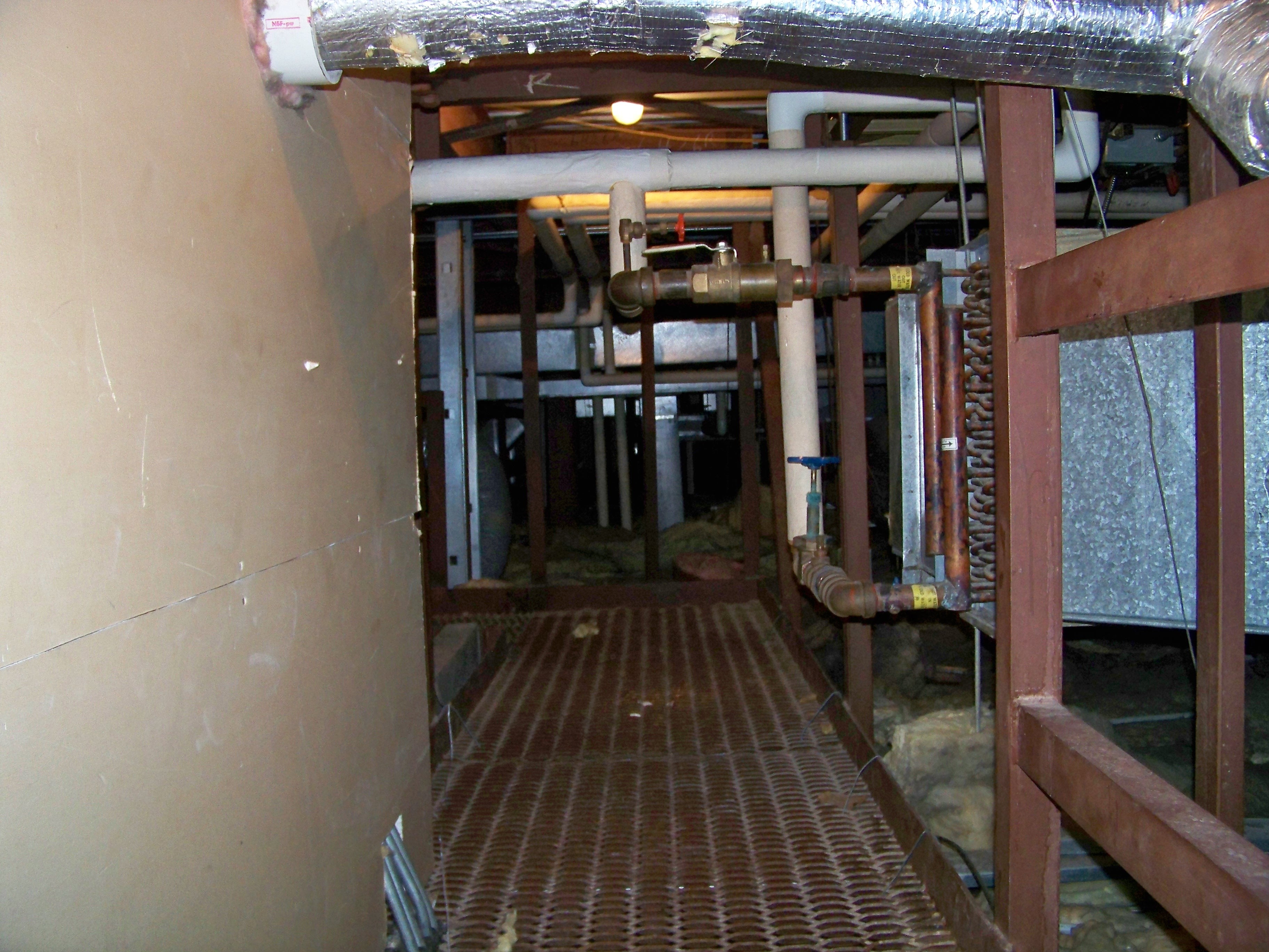 Flash didn't go off but I found a dollar. No wonder with all the up down over under pipes, ducts, wires and rails.