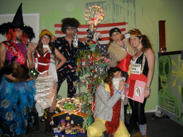This is how I spent my Christmas. After this gender-bending and utterly silly photoshoot we all paraded down the street to a local diner (still in costume!) whose patronage consists mostly of cute old couples and families with small children. Isn't our wire/pipe/torn t-shirt/stuffed animal Christmas tree lovely?