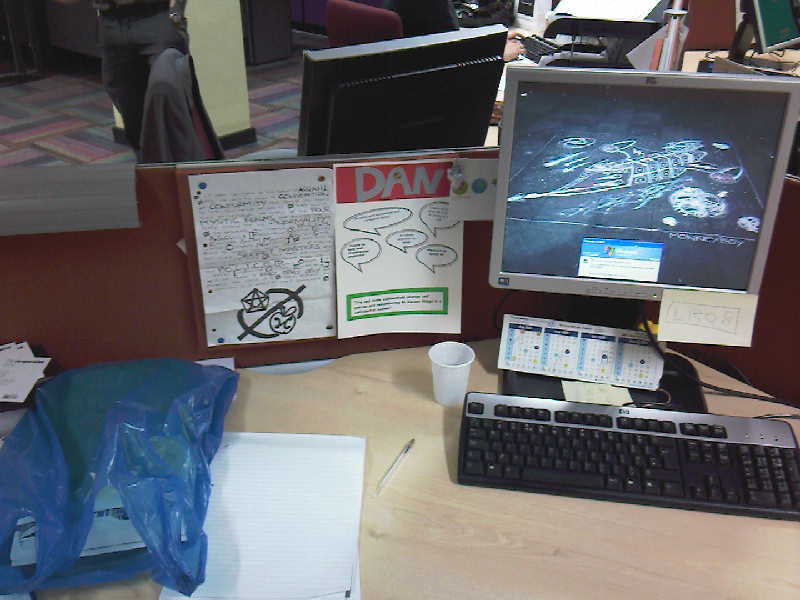 A quick lunchtime excursion took me to an Oxfam charity shop where I made twenty copies of my inflammatory message and thence to Pound Empire for some kids stickers to attach my flyers to stuff in an extra-creepy manner. Check out the pics for details. The eagle eyed will notice only 17 copies are accounted for - I'll update when I've found good spots for the remainder.