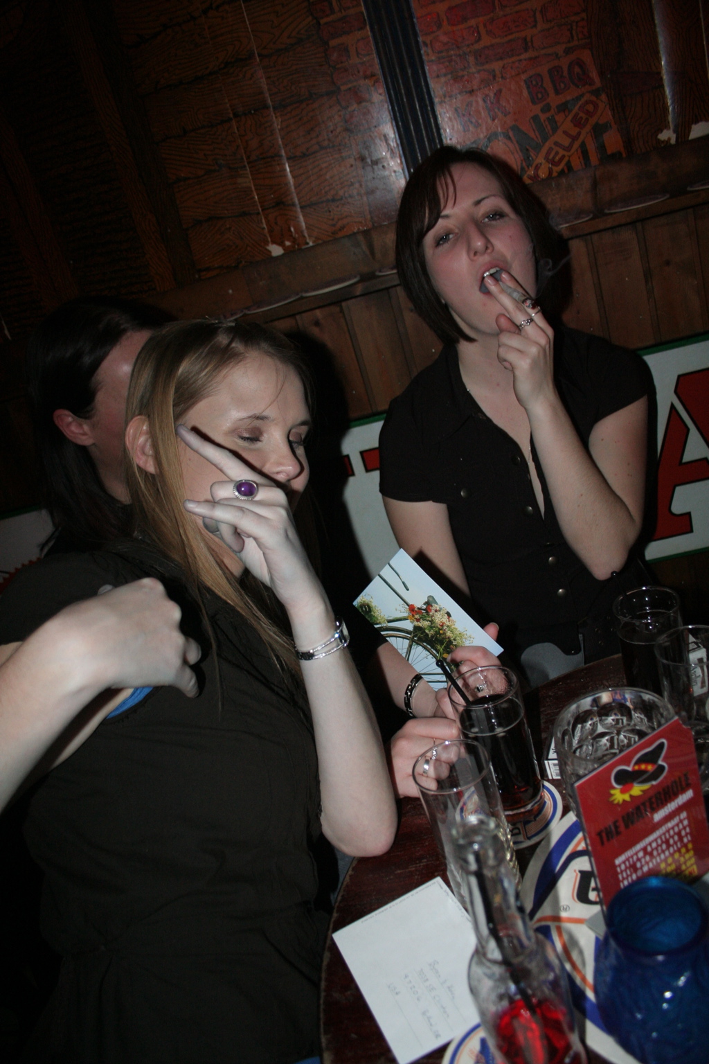 While we were at a bar I saw a group of six attractive young girls so I told them I wanted to send some postcards but didn't know what to write! They were thrilled at the prospect and snatched them out of my hands and started writing away.