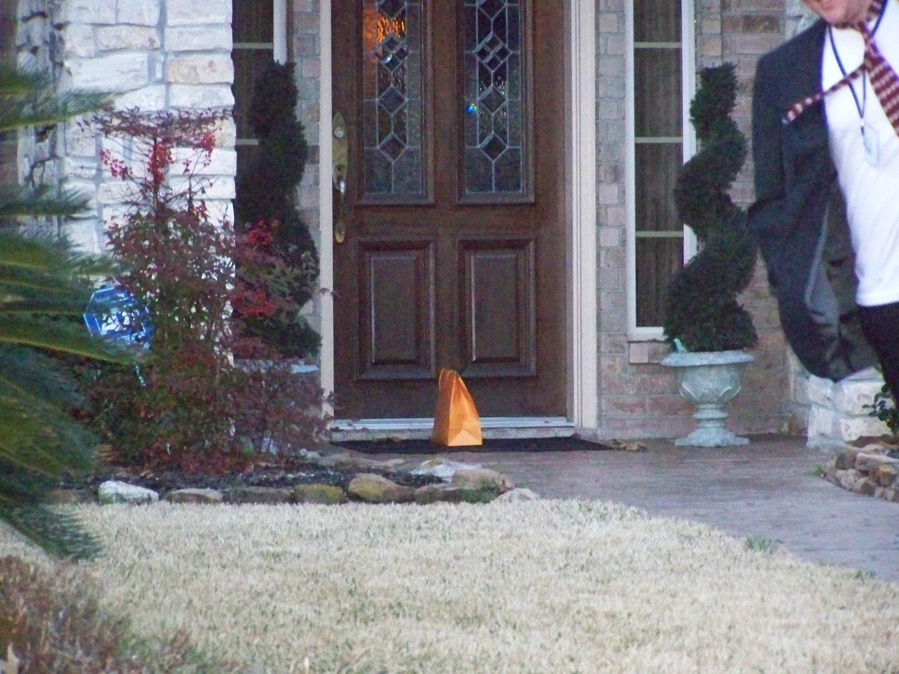 So, in the spirit of V day I decided to leave flowers and chocolate, in the form of chocolate flowers. Where you ask? On a strangers doorstep, pictured below. Also, the bag sang "rock star" when you opened it, so someone can smile before they see the gift :)