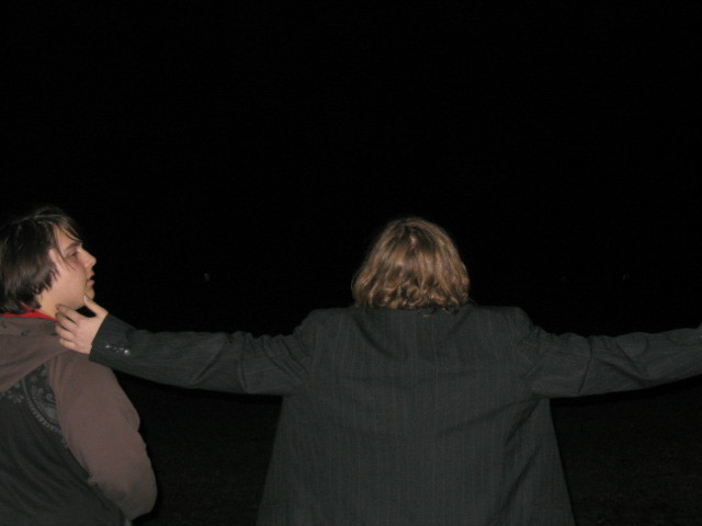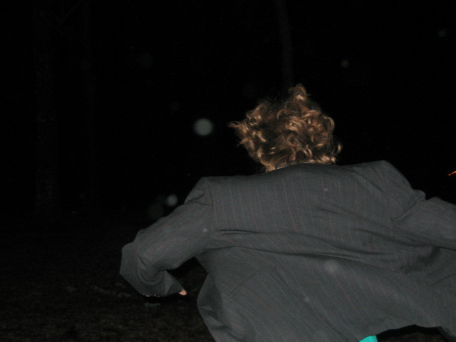 I was joined by two friends, Troy Church and clownface. We ran out into the dusk, crossing the abandoned golf course in short time. Fortunately, no one fell in the massive amounts of standing water. Unfortunately, I chose to wear house shoes for this task, forgetting that it had rained. We reached the forest and continued through the mess of puddles and twisting roots until we reached the small stream that marked the edge of the tree line.