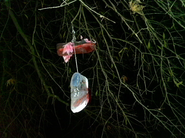 The church where I left my shoes, one a representation of the divine and one of the damned, suspended in a tree. My muse pulls me to investigate their fate.