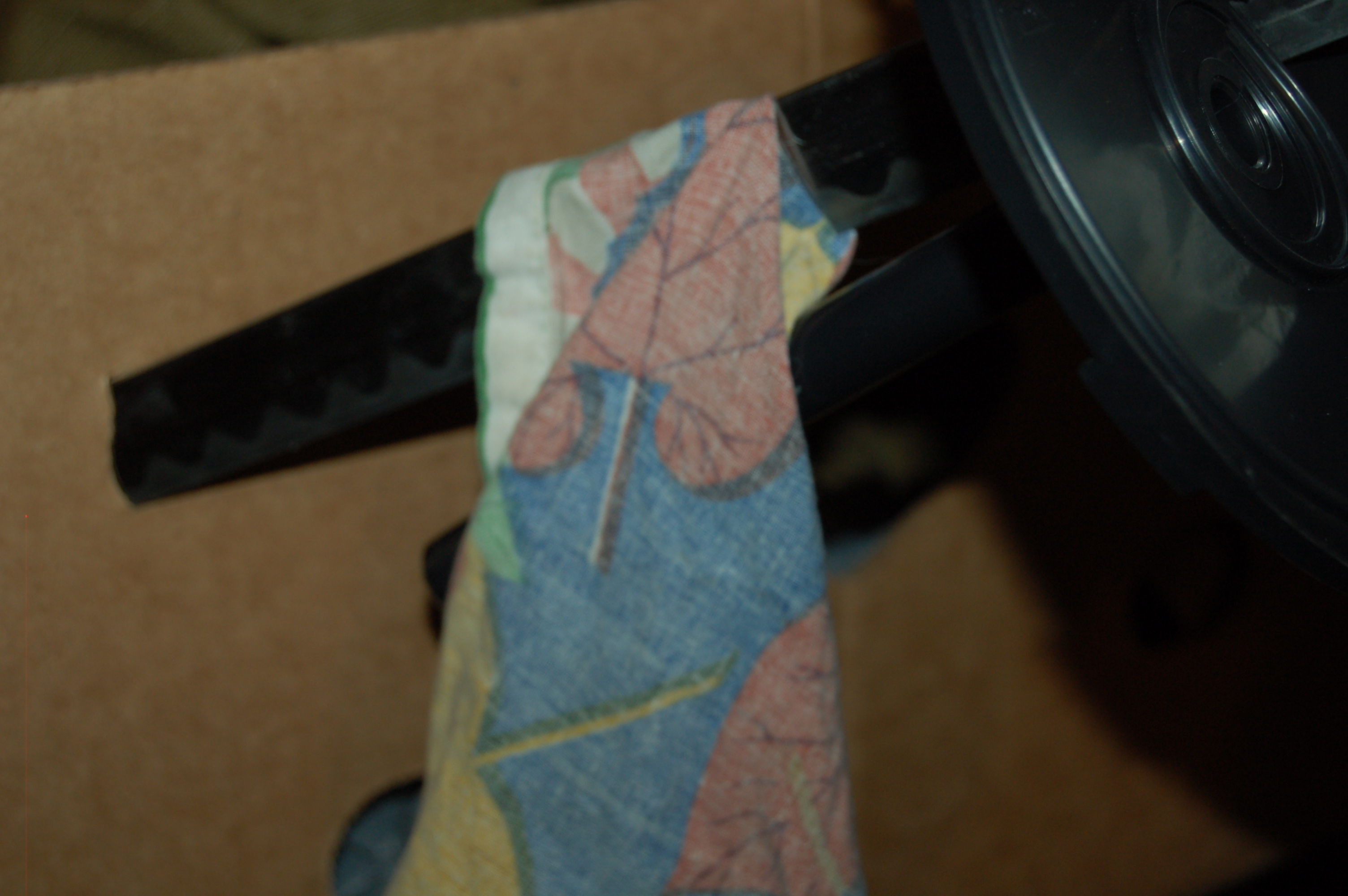 1 paper towel used as a handkerchief and then later (once I got it off the blade again) as a face cleaner.