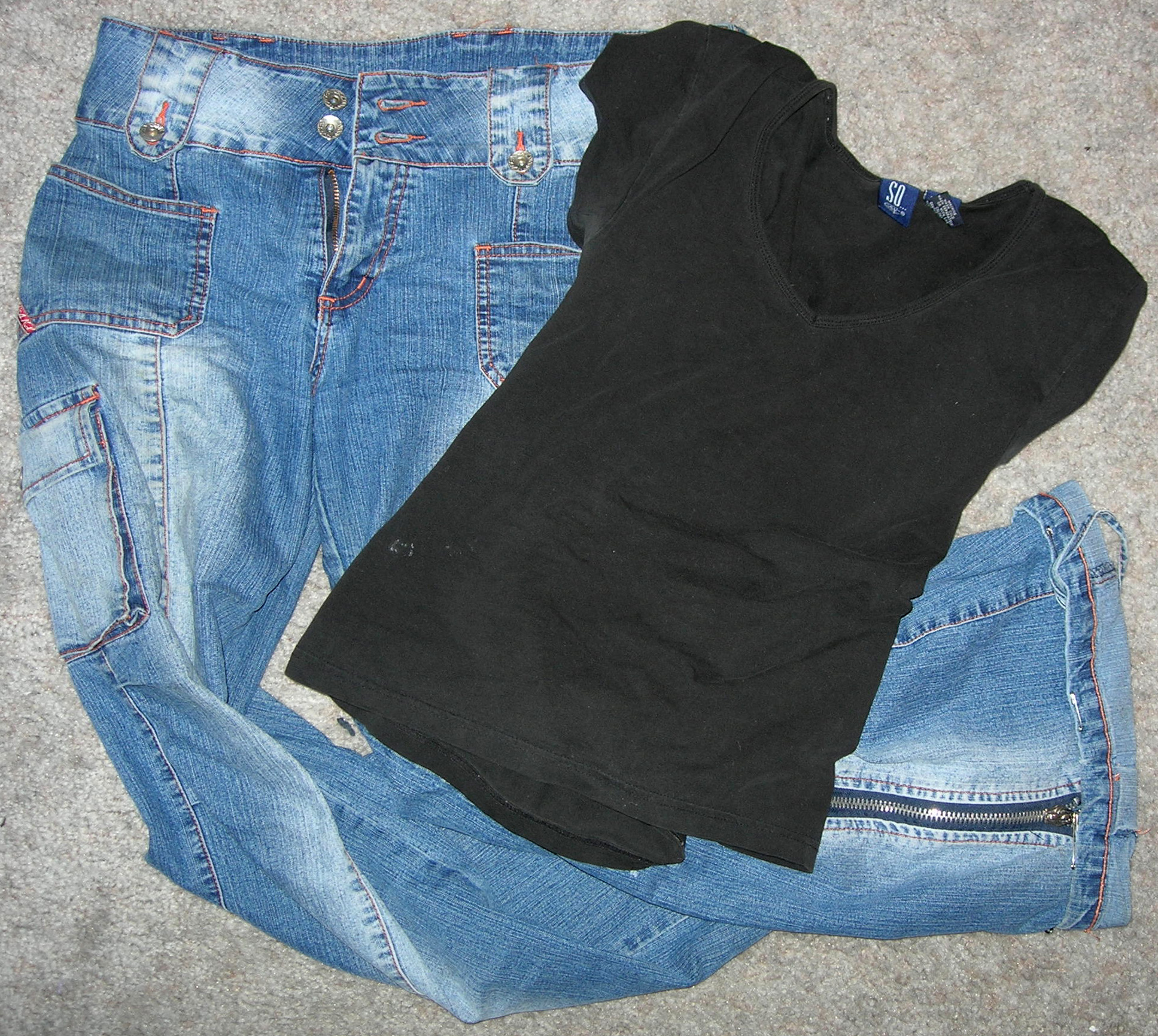 Sunday: Same blue jeans, this time with a plain black t-shirt.
