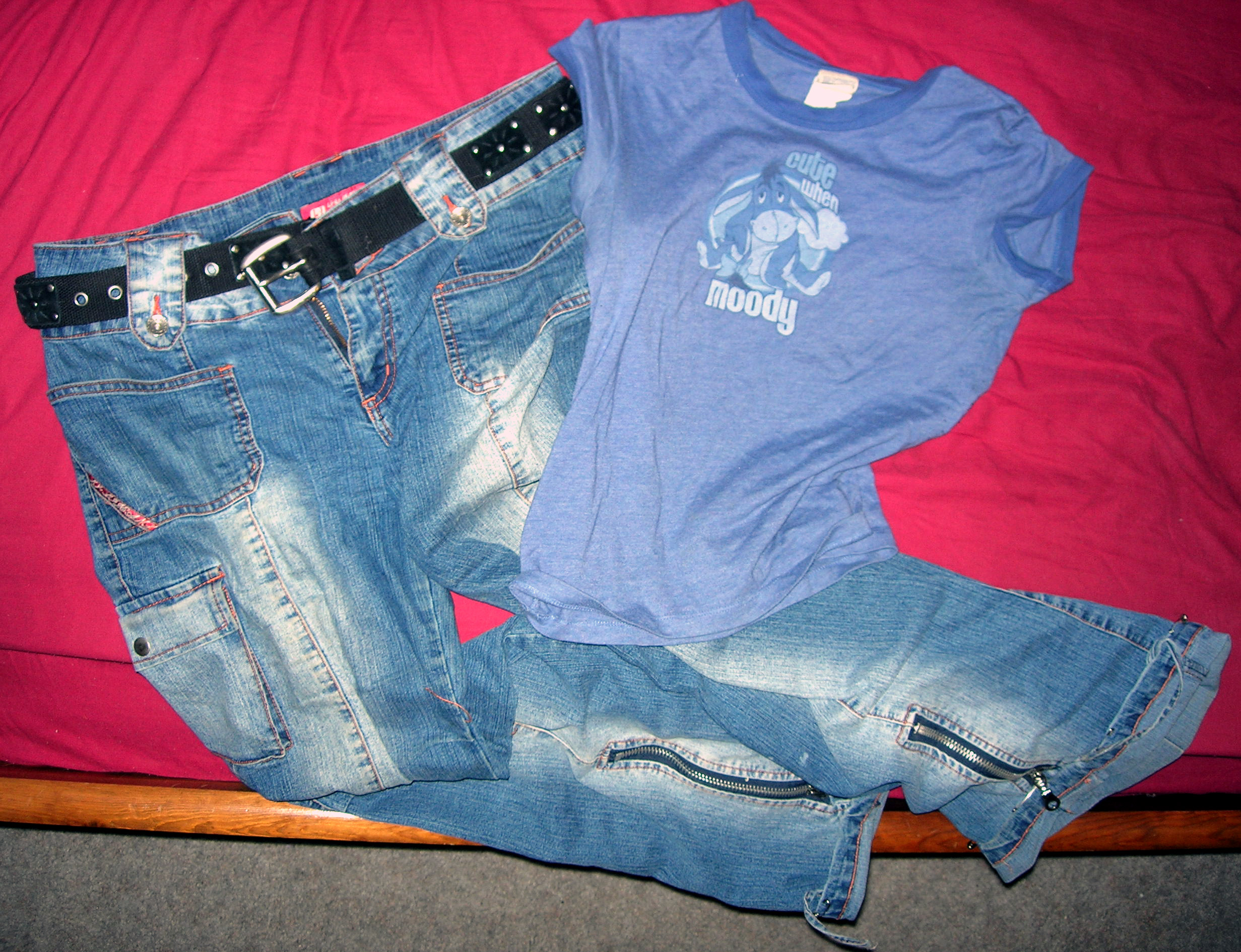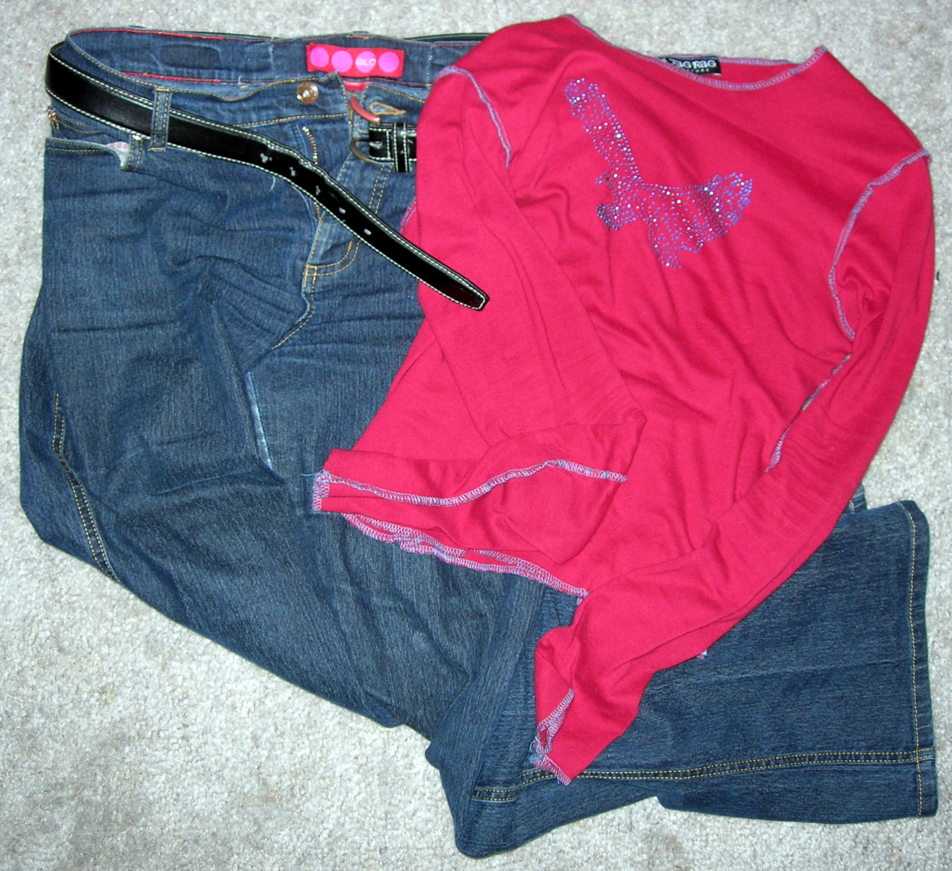 Friday: Different blue jeans, red shirt.
