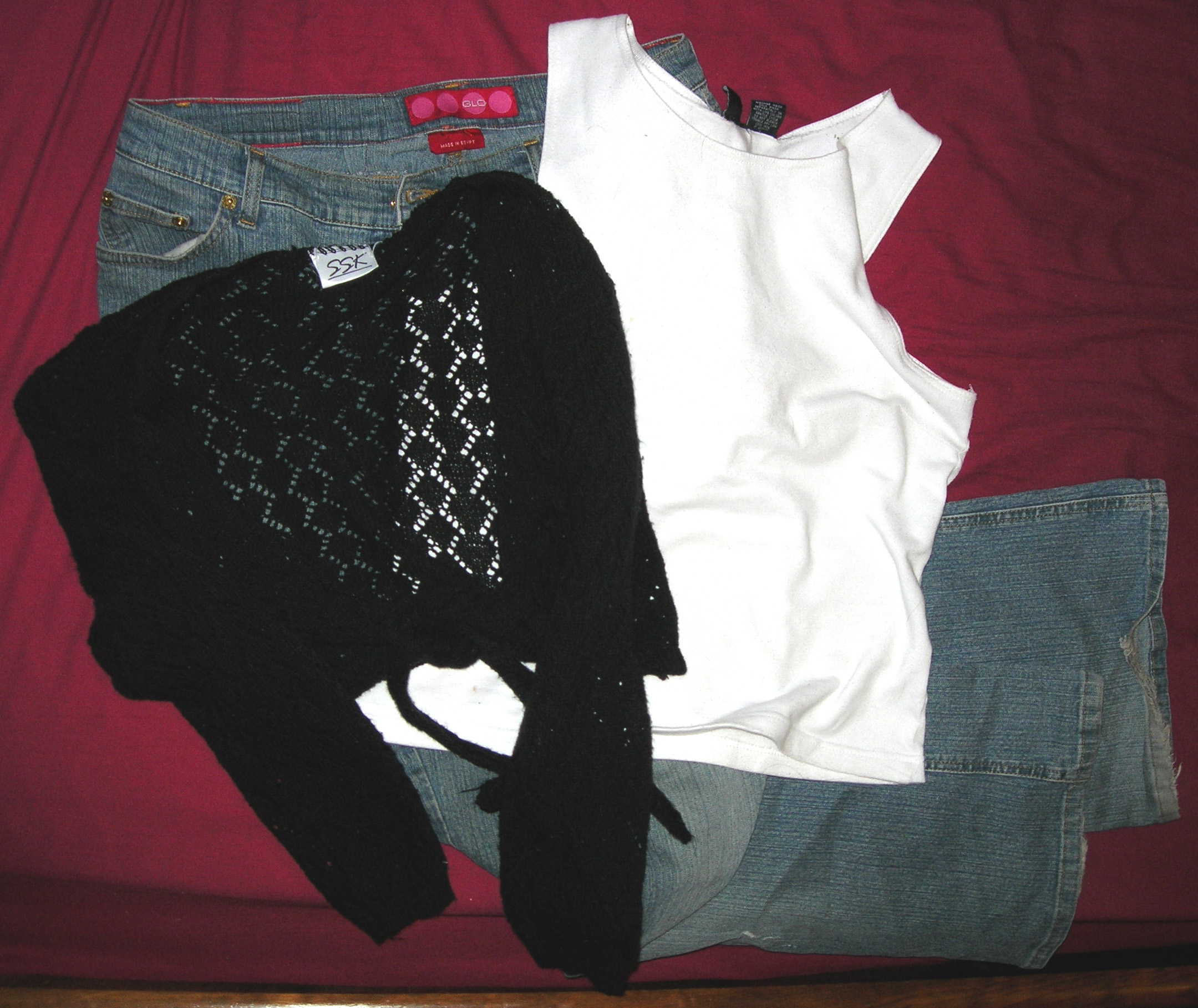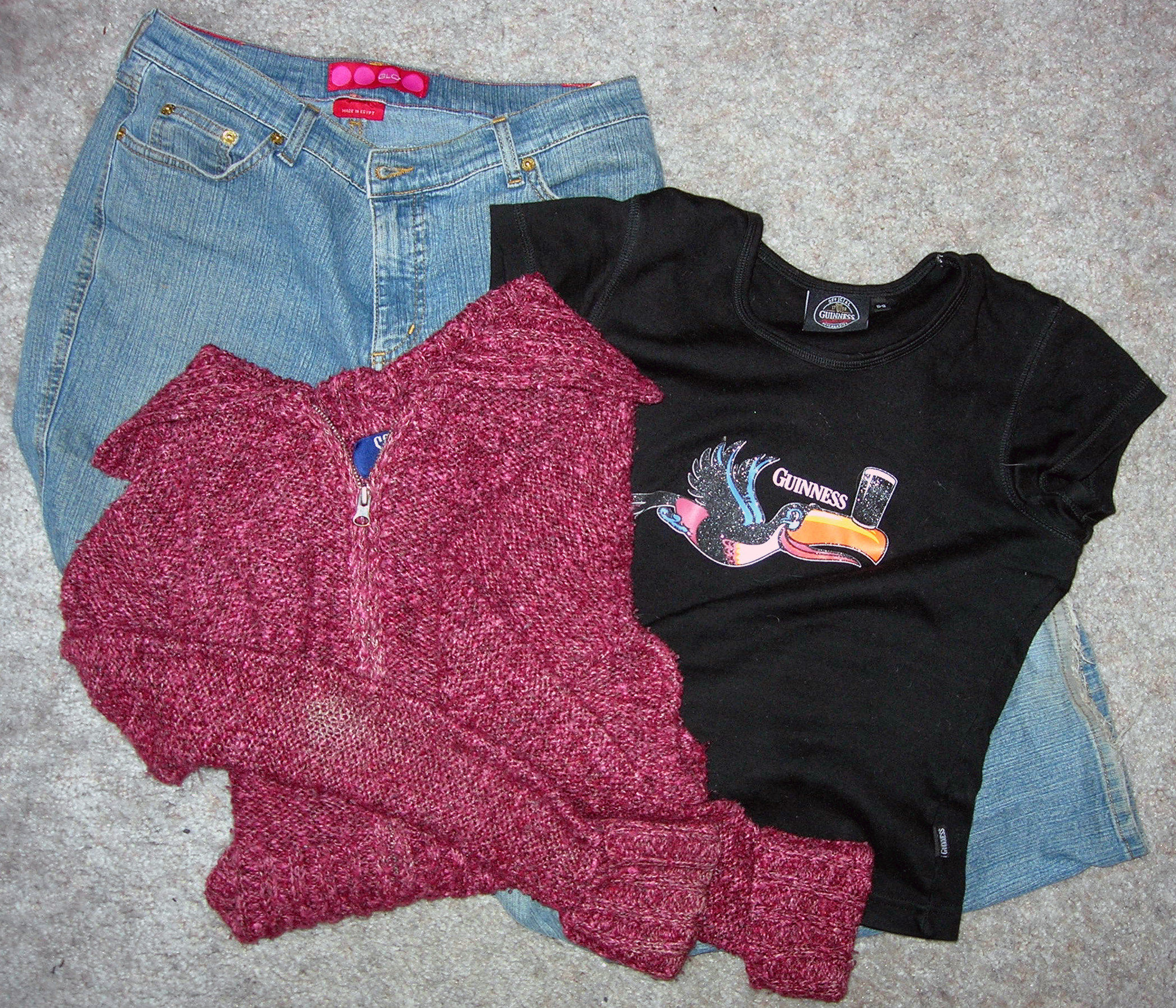 Wednesday: Same blue jeans, new black t-shirt, maroon sweater.