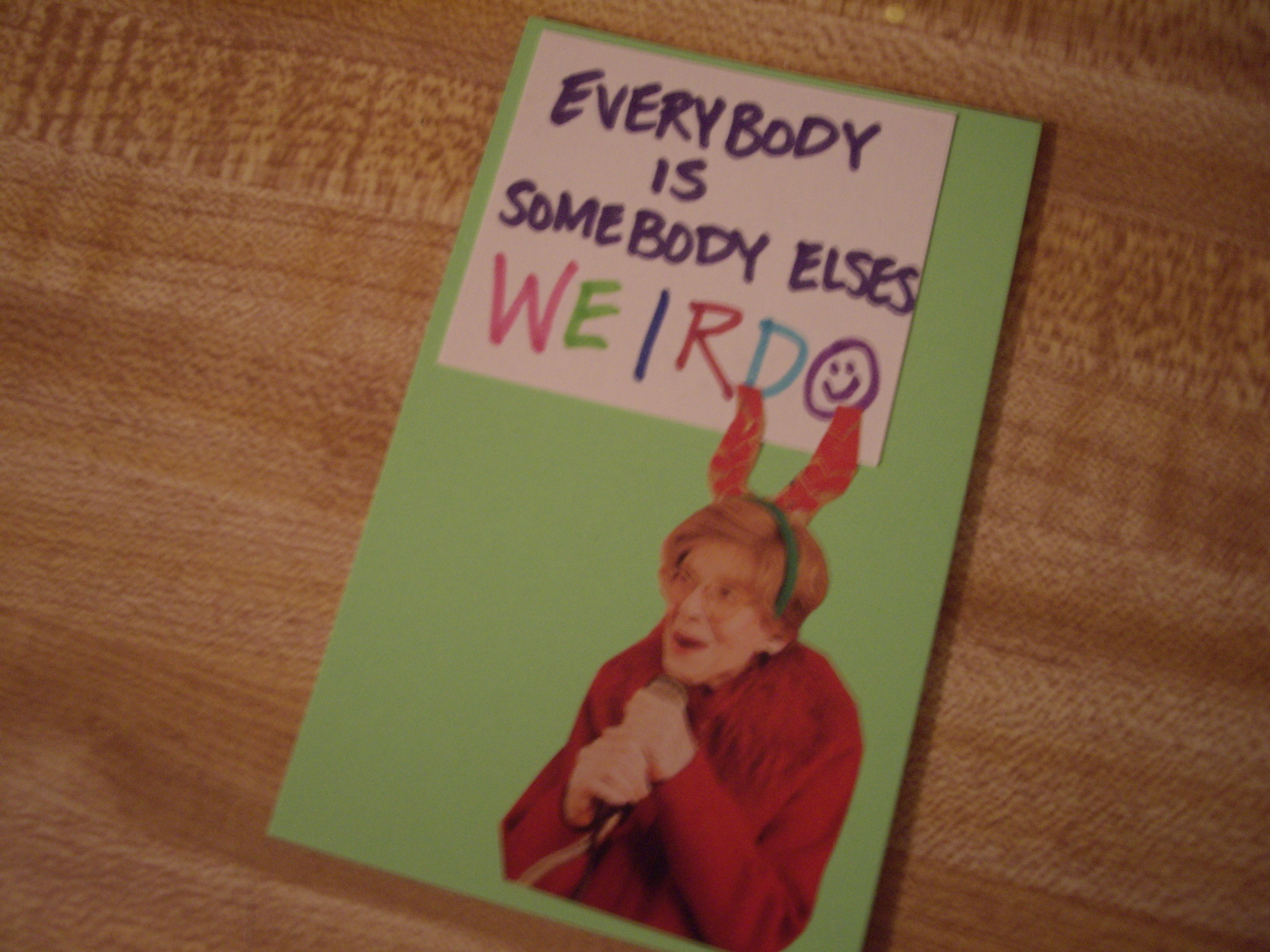 we decided to make little cards with various quotes (some funny, some inspirational) and put them in various locations around Wal-mart.