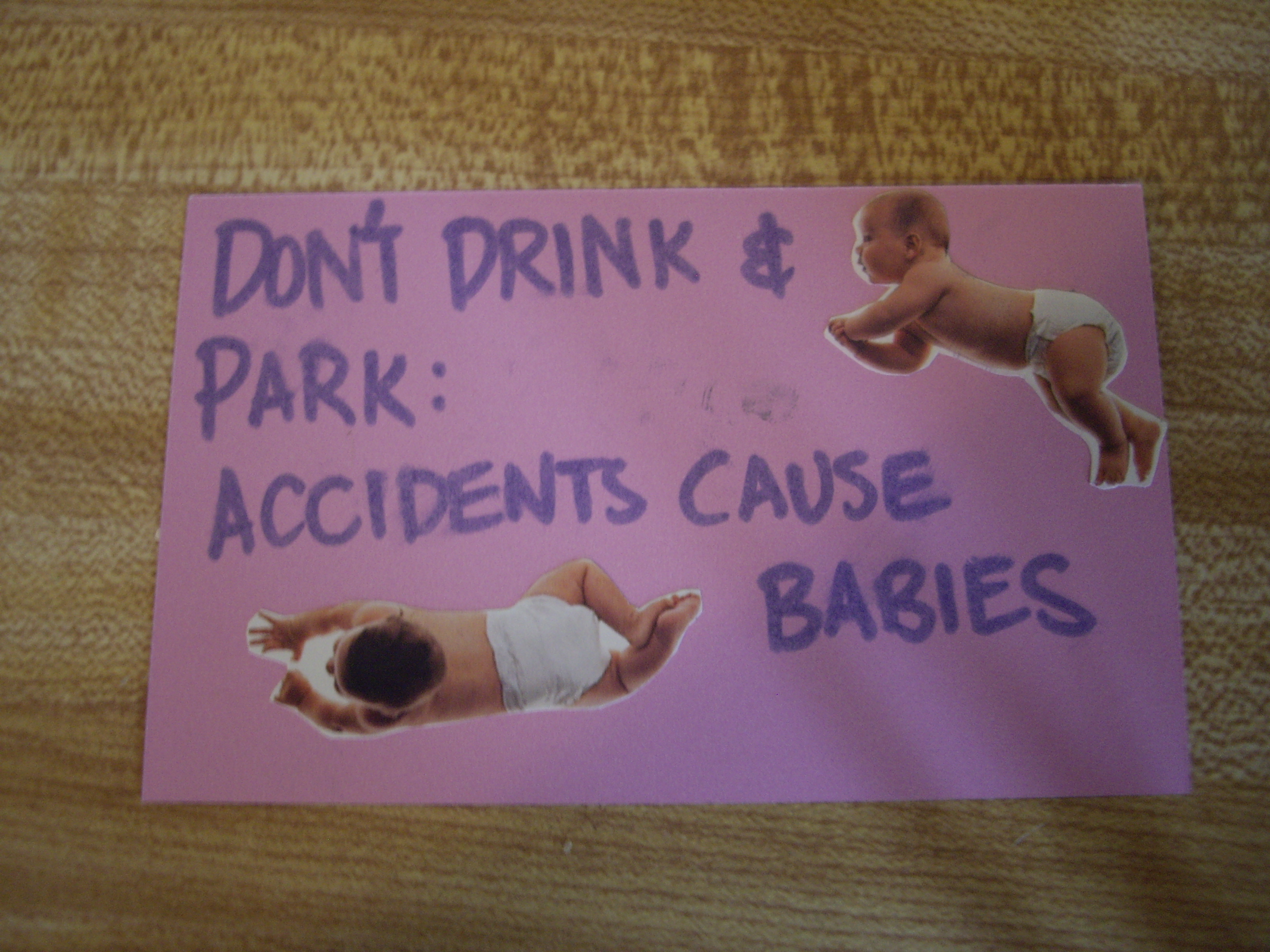 maybe they should have gotten my "don't drink & park, accidents cause babies" card (that was also stashed in..what else? a case of beer!)
