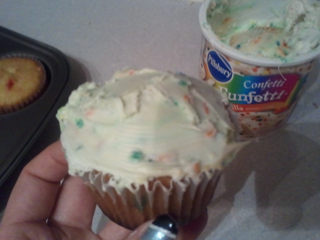 Okay, okay. I was too lazy to make homemade cupcakes, so I decided to just make funfetti cupcakes :)