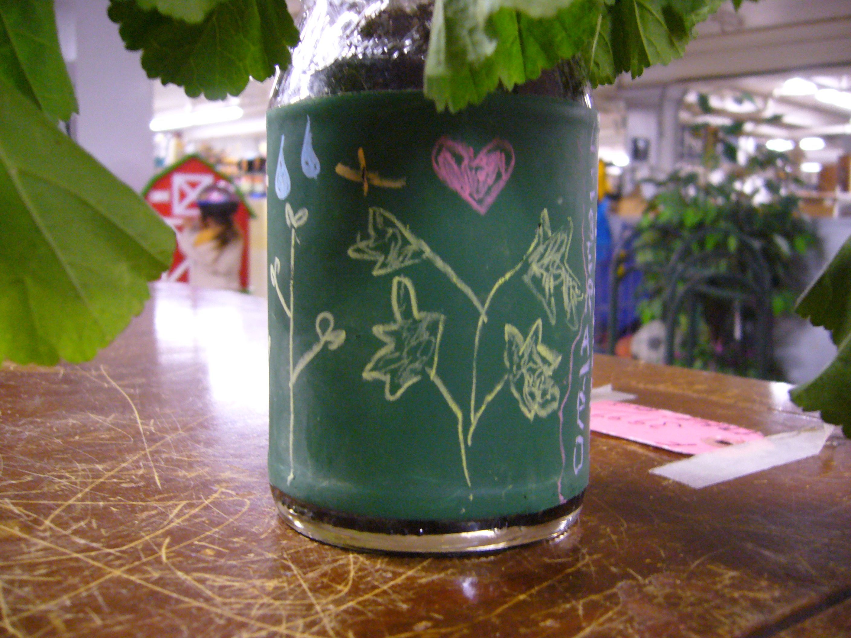first i prepared the vessel...a smucker's jelly jar dolled up with a little blackboard surface spray paint.