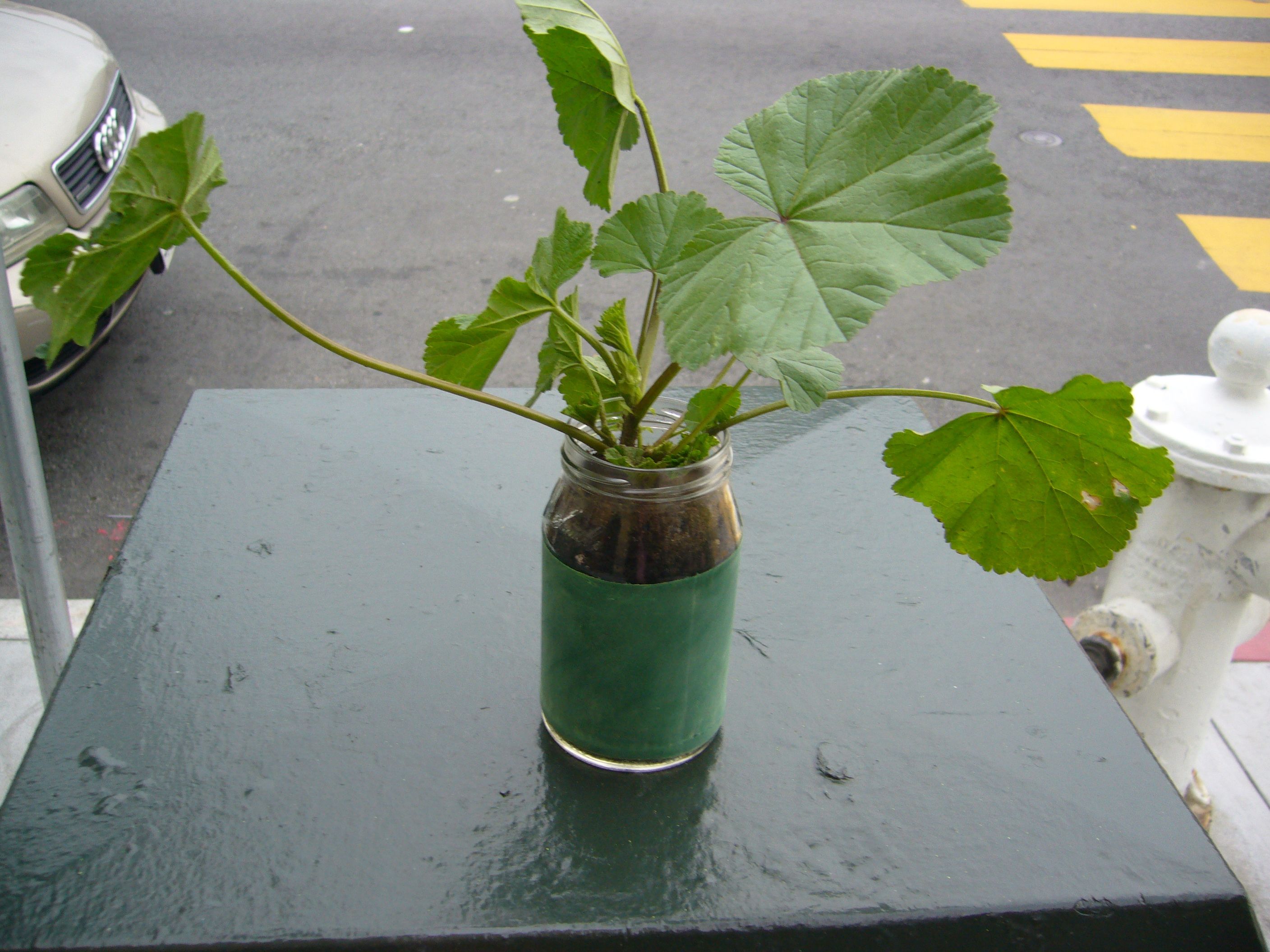 i walked around with my jar of dirt looking for a good plant to pot. i wanted to rescue something from the street because the dirt in the city tree "planters" always looks dry and barren and filled with trash.