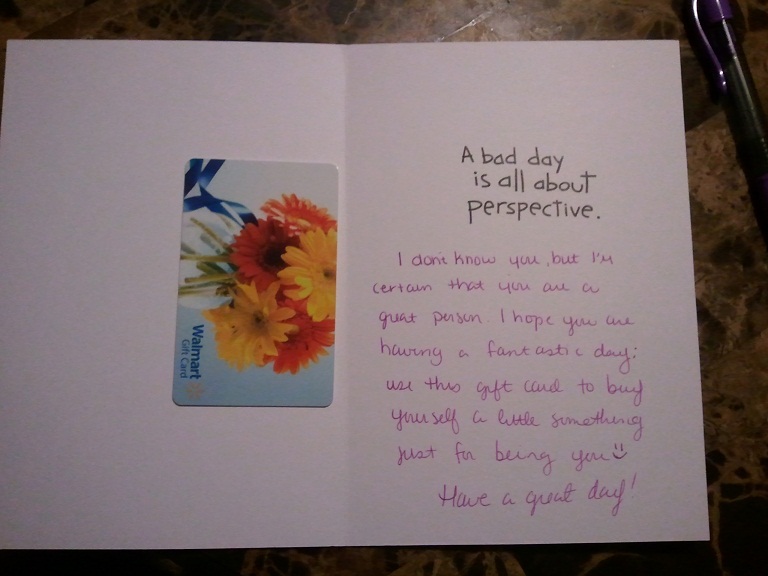 So, after becoming very frustrated with websites trying to get me to pay just to search for a random address, I instead looked up Nebraska (not really sure why, just seems like a nice state to send a card to) and zoomed in until I found a random house. So to this address on Deer lane I sent the following card, included is a $10 gift card to Walmart. I hope it makes their day better :)