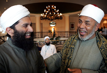 Lots of different types of people. Men over there look like some imams.