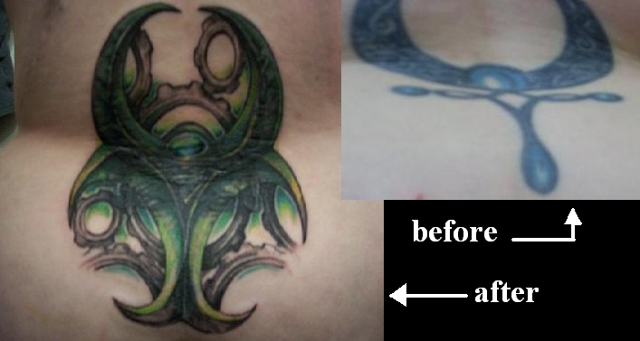 I had the tattoo on my lower back redesigned. It is now a huge biohazard symbol surrounded by gears.