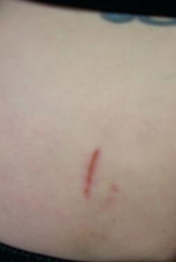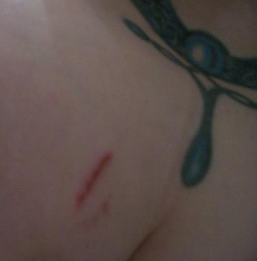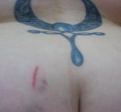Was the wall rusty? Maybe that's not just a scar, but a wall-rust tattoo. Is that even possible?