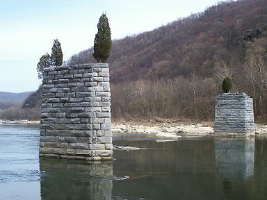 ruins of bridge across the Shenandoah River
