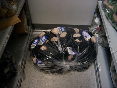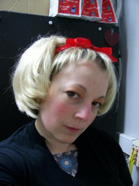 I am wearing two wigs that are meant for our stuffed animals. No, really. Our bears can have hair. Bear hair.