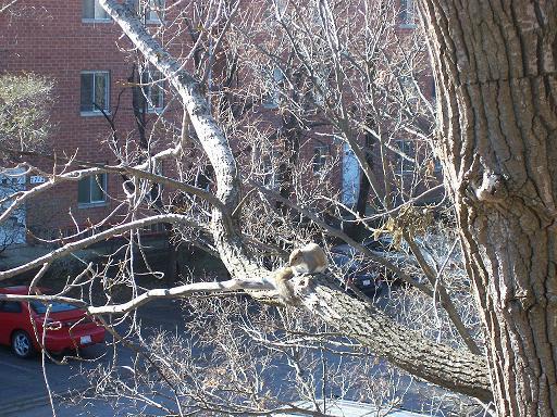 Failure! A second squirrel notices and then patently rejects my baking. At this point, I had been another fifteen minutes at the location, well past zer0gee's time and with no squirrel catch to show for my effort. I accepted my defeat and stumbled, half-frozen, back to the car.