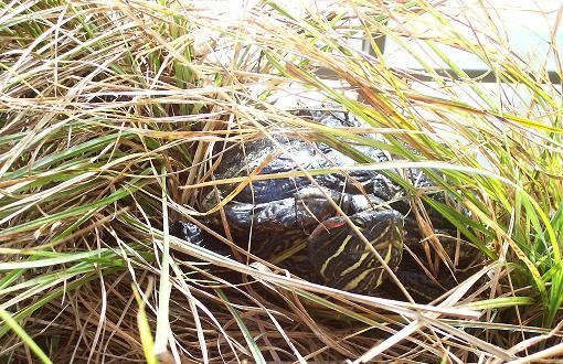 This is the roof of the nature center. In the warm months, it has a sod roof to help insulate it.