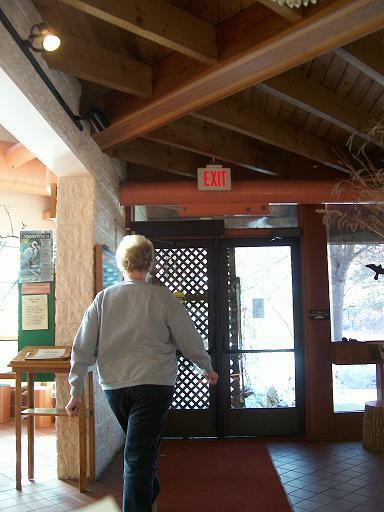 After morning checkout, I got on the bus again and went to visit Spring Valley, a 135-acre wildlife and nature preserve, historical interpretation site, and nature center. I have lived fifteen minutes away from this place for six years and had no idea it existed. I signed the guest register as my New Orleanian tourist alter-ego, and talked to the very nice lady at the reception desk about how I was visiting Schaumburg to get away from the 70 degree weather and Mardi Gras crowds "back home". I had an awesome time exploring the nature center and doing a little trail hiking, but due to the time of year and the 16 degree temperature, I was the only visitor. On my way through the parking lot back to the bus stop, I met Kumiko and Yoshii, two lovely Japanese ladies whose husbands were attending a business conference. I went back into the nature center with them for a while and looked at the exhibits again, but declined to go back out on the cold, snowy hiking trails. They politely asked that I not take photographs of them.