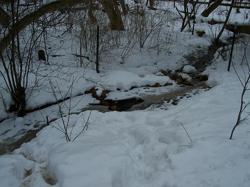 The water was still running under the ice. There was a strong musky smell in this area - I'm sure lots of wildlife drinks here.