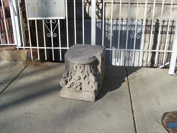I'm pretty sure this is a chunk of the facade on the sidewalk in front of the building.