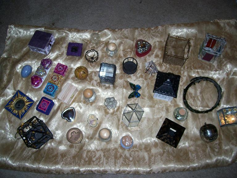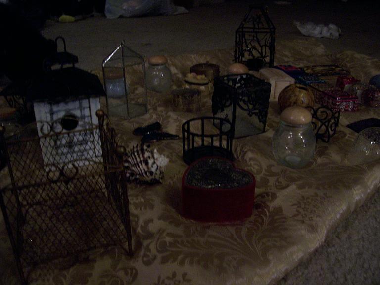 Fairy cages, jeweled treasure boxes, large shells, jars of wishing stones, a peacock feather crown, stained glass butterfly, dragon and goblin eggs, a mermaid's treasure box, a fairy princess' bed - all manner of wonders.
