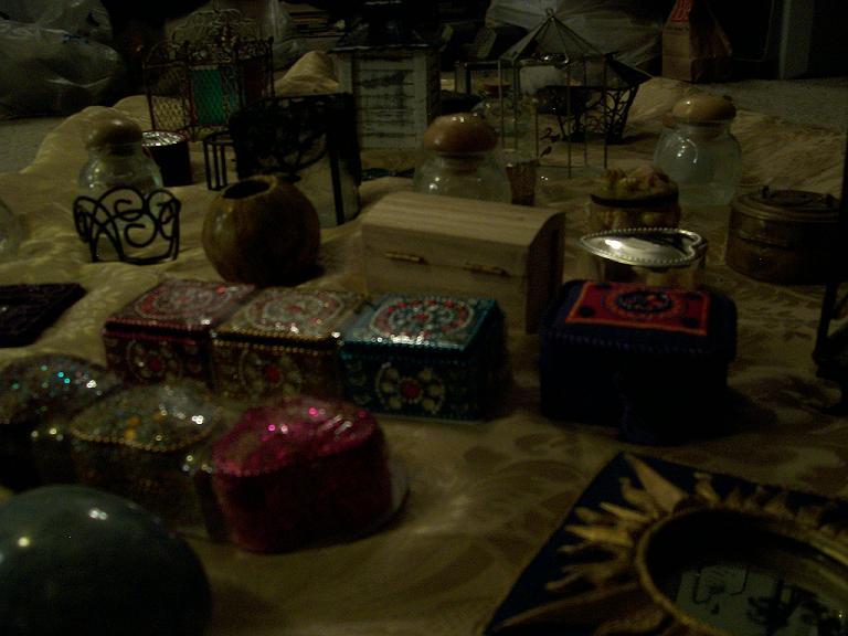 Object bought - a deep blue Indian silk box with beaded lid. Payment received - singing your favorite song, tendered as a rendition of "Old MacDonald".