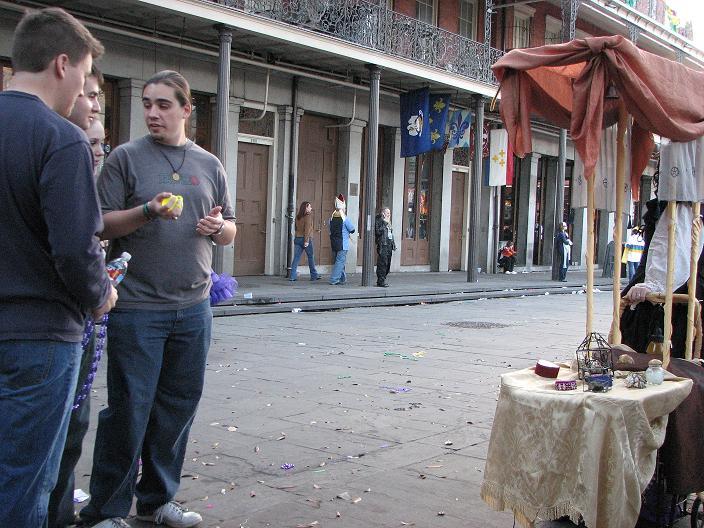 Interlude - A member of one of the many Christian youth groups that floods New Orleans to try to save lost souls amid the debauchery stopped by and inquired about my purpose. He was interested, but said his group did not allow their members to acquire souvenirs. A group of four tourists paused and considered a purchase, but ultimately decided against it.