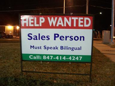 "Must speak bilingual." hahaha